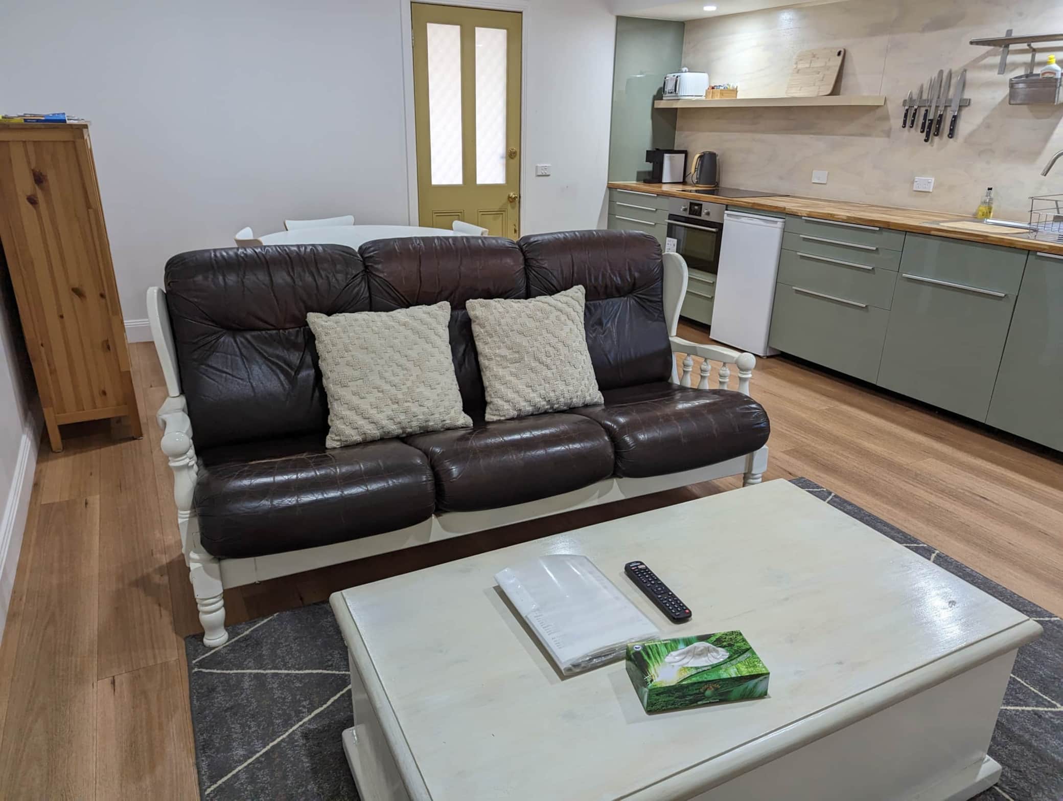 This house was built in the 1850s on wooden stumps and bearers cut from local trees. Some of those foundations remain today. Over the last 140 to 160 years, the house has been extended from a rudimentary one bedroom weatherboard cottage into a large brick veneer house. When we had the floor up, we were able to trace some of the many changes and alterations. We have done a full renovation, repairing structural problems and completely revamping the internal specifically to the needs of a guest. It has a temperate atmosphere because of its extensive insulation and perfectly designed colouring scheme.